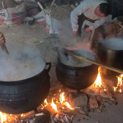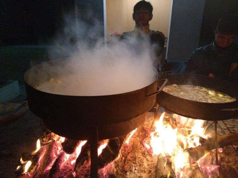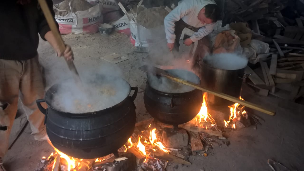 Aber es wurde natürlich auch gefeiert; hier mit dem „Haciendo locro“ einem Gericht, das bei keinem Fest fehlen darf.