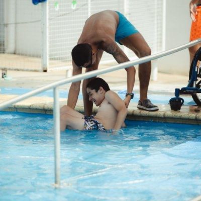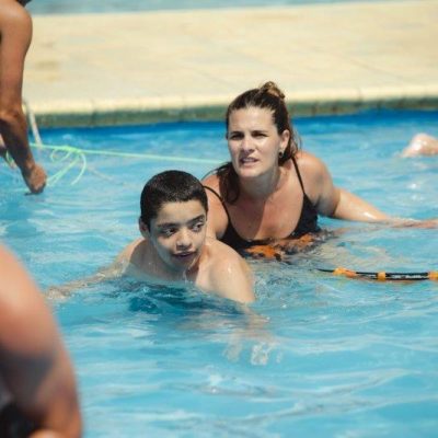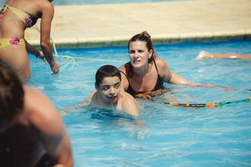 Heute ist das Ferienprogramm eine feste Einrichtung geworden, die von den Bürgerkomitees der acht umliegenden Stadtviertel und deren sozialen Einrichtungen getragen wird. Über 5 Wochen gibt es Angebote, am Vormittag für Kinder von 6 – 12 Jahren aus den umliegenden Armenvierteln, am Mittag und Abend auch für Jugendliche. Es nehmen täglich 70 bis 100 Kinder und Jugendliche teil. Spiele werden angeboten – vor allem natürlich Fußball. Eine ganz wichtige Rolle spielt aber auch das Schwimmbad, das die Stadt auf dem Gelände gebaut hat, das die Granja ihr mit Auflagen geschenkt hat. Am Samstag und Sonntag ist es kostenlos für die anliegenden Viertel geöffnet und unter der Woche für die im Ferienprogramm Angemeldeten. Das Granja-Team bietet z.B. Yoga im Wasser an von 17 bis 18 Uhr für ca. 60 Personen und von 18 bis 21.30 Uhr kommen Jugendliche, die Probleme mit Alkohol und Drogen haben. Sie sollen sehen, dass es auch bessere Möglichkeiten gibt, die Freizeit zu gestalten. Inklusion – gegenseitiges Verständnis zwischen Behinderten und Nichtbehinderten – ist natürlich bei diesem Projekt ein Hauptargument.