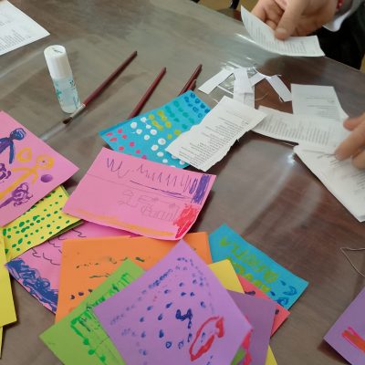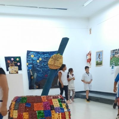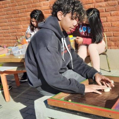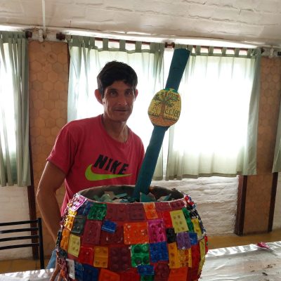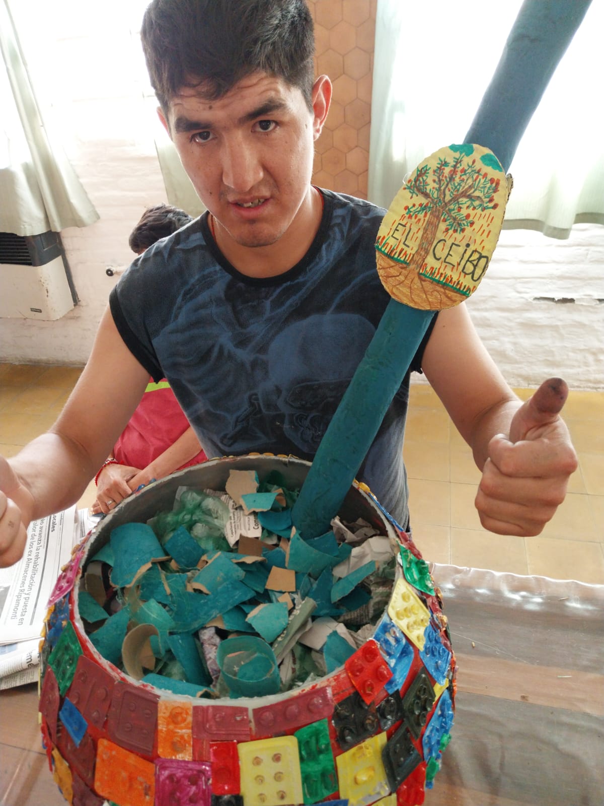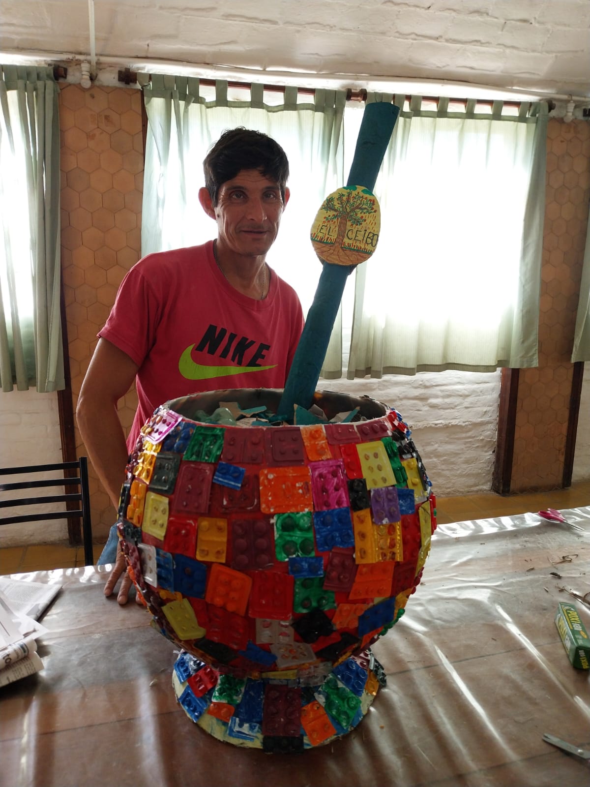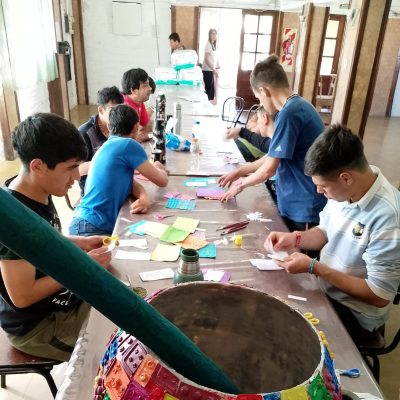 Das Sekretariat für nachhaltige Entwicklung (Umweltschutz etc.) hatte ein Kunstprojekt ausgerufen. Alle Werke mussten aus Müll gefertigt werden. Unsere Jungs gestalteten zusammen mit der Psychologin und einer Arbeitstherapeutin ein großes MATE – das Symbol der Freundschaft. Sie waren – wie die Bilder zeigen – mit Begeisterung dabei.