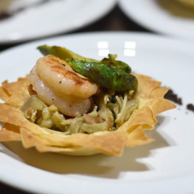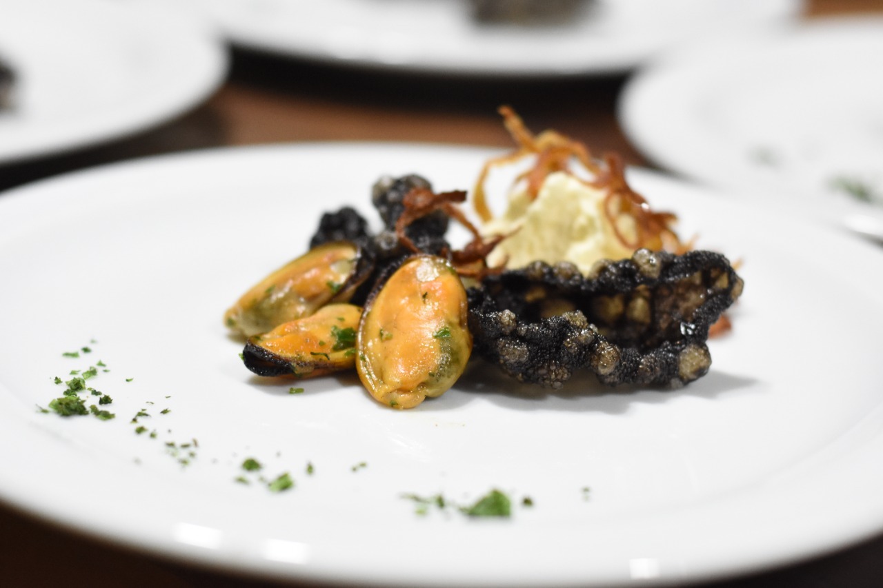 Auf der Menuekarte standen Tapioca, Miesmuschel, Blini mit geräuchertem Lachs, warmer Salat vom Fenchel, Avocados, Milanese von Octopus, Chesscake mit Maracuya.