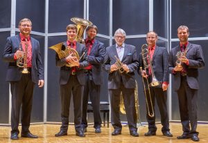Benefizkonzert für die Granja im März 2016 mit dem Blechbläserquintett EmBRASSement. In der Mitte der Sponsor Klaus Dinges.