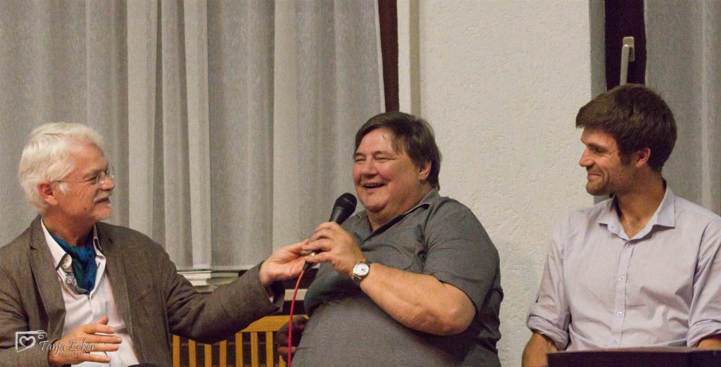 Dazwischen berichtete Hans-Gerd Wiesner von der Granja in einem Gespräch mit Markus Manfred Jung und dessen Sohn Manuel Bertrand, die beide längere Zeit dort gelebt haben. Hierbei wurde ganz deutlich, dass die Granja kein Heim im üblichen Sinne ist, viel mehr leben die Menschen dort in einer Familie, der „Familie des Ceibo“. So hörte man bewegende Geschichten, die eine freundliche, ja herzliche Atmosphäre auf der Granja erahnen ließen.
