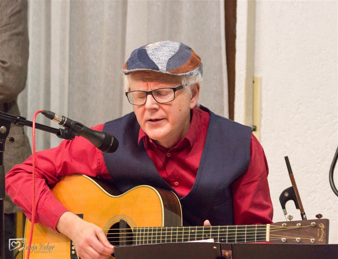 Die beiden Künstler Markus Manfred Jung und Uli Führe gestalteten ihr gemeinsames Lied- und Textprogramm „uf Alemannisch“ sehr beeindruckend. Im ersten Teil wurden Titel von der gemeinsamen CD „Federelicht“: Lyrik von MM Jung, vertont von Uli Führe vorgetragen. Im zweiten Teil las MM Jung heitere, aber auch nachdenkliche Geschichten, die z.T. aus seiner „Wehrer Zeit“ stammten und bei den Zuhörern manch verständnisvolles Schmunzeln erzeugten. Uli Führe steuerte Lieder bei, die von seinem hintergründigen und tiefsinnigen Humor geprägt waren.